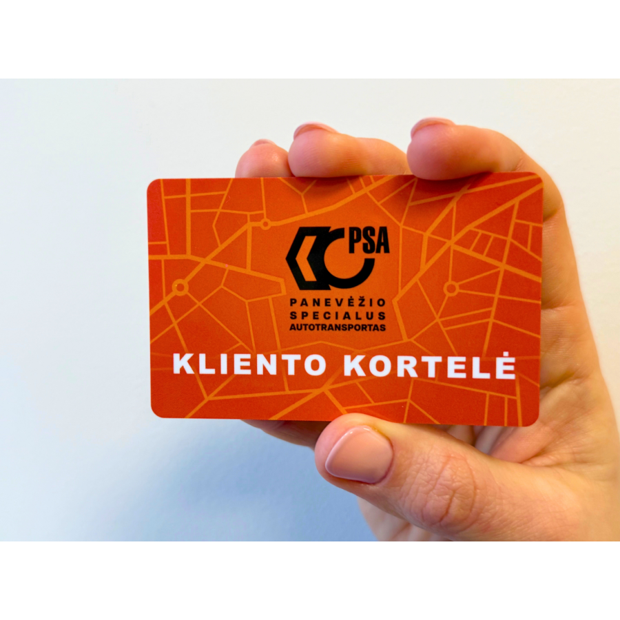Klientų patogumui, AB „Panevėžio specialus autotransportas“ klientų savitarnos svetainėje (https://savitarnapsa.mokesta.lt/kliento-kortelė) yra sugeneruota elektroninė kliento kortelė, todėl ją galima bet kuriuo metu pasiekti, išsisaugoti telefone ir naudoti atsiskaitant už komunalinių atliekų tvarkymo paslaugas. Tai modernus sprendimas, leidžiantis visada turėti kliento kortelę su savimi ir patogiai atsiskaityti be papildomų dokumentų.